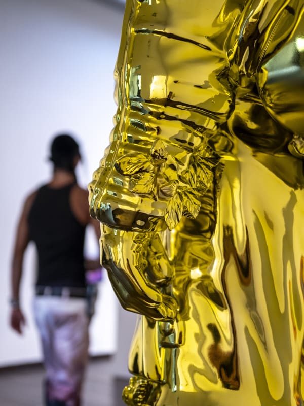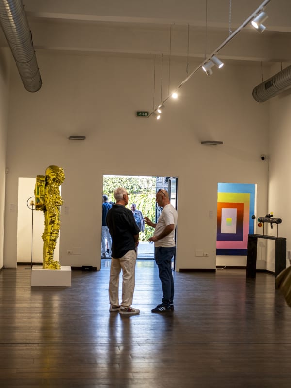 It was yellow the Spaceman made by Filippo Tincolini on show at the Pietrasanta Gallery "The Project Space", during the Collectors Night 2024. "The Space in Between" is the title of the exhibition that aims to explore the connection between the material and the spiritual, an ideal context for Tincolini's Spaceman yellow. The yellow, in fact, is a color that evokes energy, vitality and dynamism and reflects the adventurous nature of space exploration but contrasts with the natural theme of leaves and flowers highlighting the tension between technological progress and the environment.