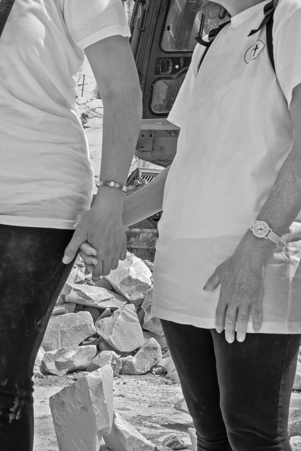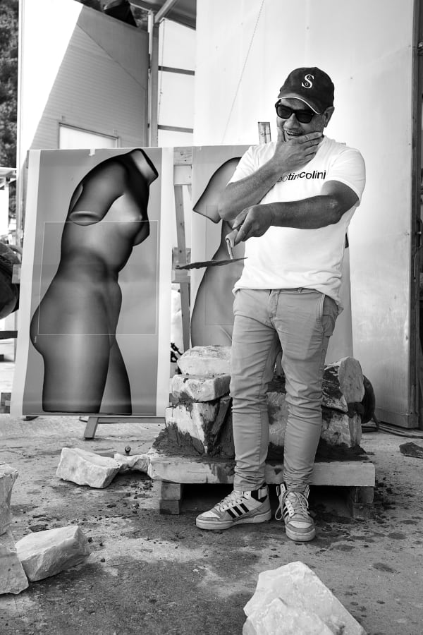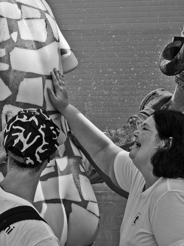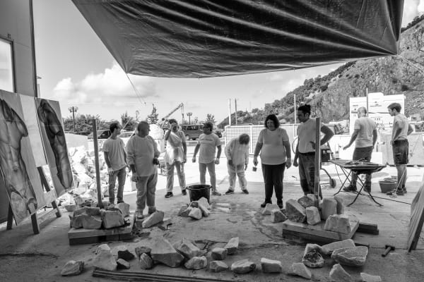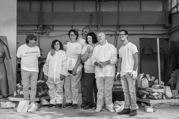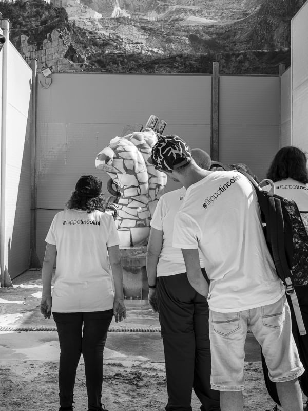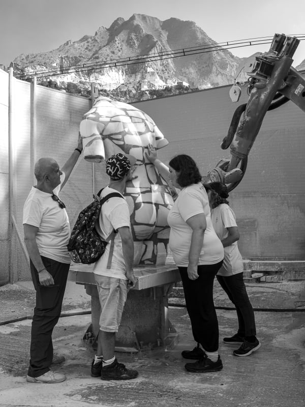 The sculptures were made using marble processing waste, with the participants actively involved in selecting materials at the quarries. They then reconstructed a new block of stones and cement, which was later sculpted using robotic technologies combined with manual finishing. The result are two works that reinterpret, in a contemporary key, the image of an ancient Venus and a fragmented male bust.Aesthetically, the sculptures represent a perfect fusion of classical art and modern techniques, creating a visual paradox: instead of removing material, the approach was to add it, reconstructing the starting blocks of the sculptures in reverse. The final appearance recalls the dry-stone walls built by quarry workers to navigate the marble quarries, celebrating the local landscape and its history.The main goal of the project was to offer participants the opportunity to immerse themselves in art, discovering the joy and fulfillment that creative expression can bring. At the same time, it aimed to raise awareness within the community about disability, inclusion, and the importance of art as a tool for communication and social change.The collaboration between the participants and Tincolini, as well as the entire behind-the-scenes process of the exhibition, is documented through a series of photographs and a video by Laura Veschi. -